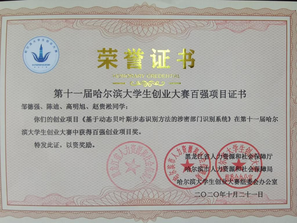 10月21日,以“创客当下,赢在未来”为主题,由黑龙江省人力资源和社会保障厅、哈尔滨市人力资源和社会保障局联合主办,哈尔滨市人才服务局承办的第十一届哈尔滨大学生创业大赛决赛圆满落幕。36365官网与哈尔滨工业大学、黑龙江大学、东北农业大学、东北石油大学、哈尔滨理工大学、黑龙江中医药大学等20所高校获得了大赛“优秀组织奖单位”。36365官网《芝麻开门——低温萃取技术下芝麻的全产为链应用》《基于改进型Adaboost算法的航载无人机水稻产量预测系统》《基于动态叶贝斯步态识别方法的涉密部门识别系统》三个创业项目荣获大赛“百强创业项目奖”称号。