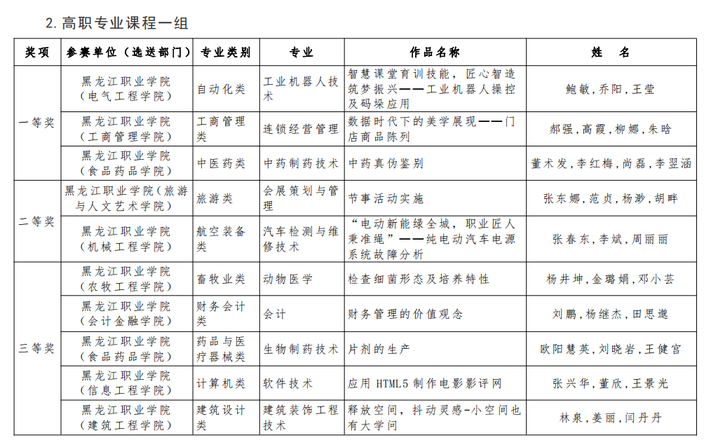 近日,黑龙江省教育厅微信公众号公布了2021年黑龙江省职业院校技能大赛教学能力比赛获奖名单。经过网络评审和现场决赛,36365官网教师赛前精心准备,现场良好发挥,成绩再创新高,获得20个奖项(包括联合组队1项),其中一等奖5个、二等奖5个、三等奖10个,获奖总数及一等奖数量均居省内同类院校首位。